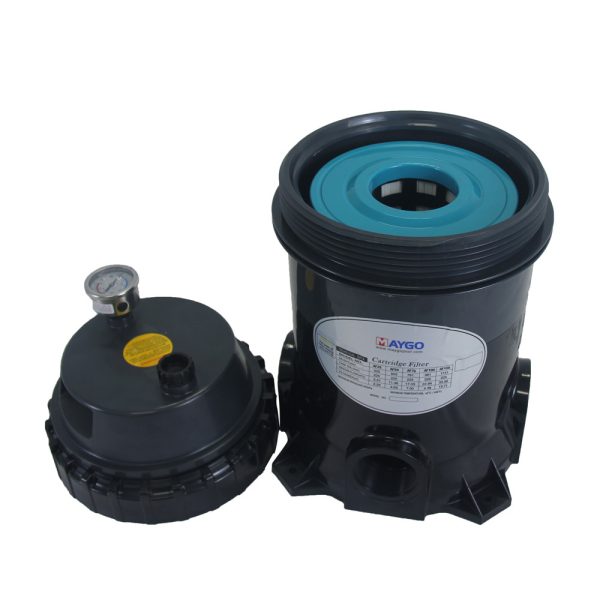 Cartridge filtration is an effective trouble-free proven method of filtration Pool water enters the filter and passes through a polyester single element cartridge. Suspended particles are trapped and the water is returned to the pool. As the build-up of dirtin the elementincreases so the water pressure rises and the flor decreases When the pressure reaches an unacceptable level. the element must be removed and cleaned(spray washing with a common gardein hose is generally sufficient.