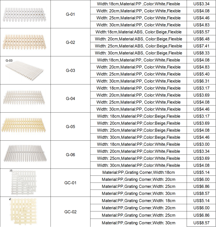 Made from durable, chlorine-resistant PP (Polypropylene) or ABS plastic, these modular pieces are available in multiple widths (18cm, 20cm, 25cm, 30cm) and two main colors (White and Beige). They are essential for a clean and safe pool environment, allowing excess water to drain effectively while providing a secure, walkable edge. The selection includes both straight models (G-01 to G-06) and specialized Corner Grating (GC-01, GC-02) to fit any pool shape.